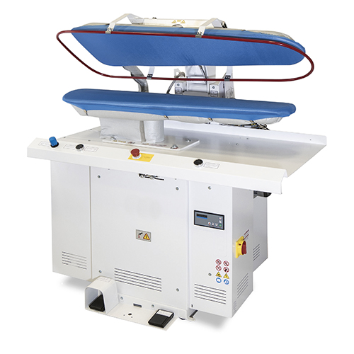 Inclui plano superior aquecido a vapor, plano inferior com aspiração e proteção de mãos. Fecho do plano superior através do acionamento de dois comandos. Dotado de caldeira de 24L com dupla resistência (9 KW + 9 kW) e compressor de 24L